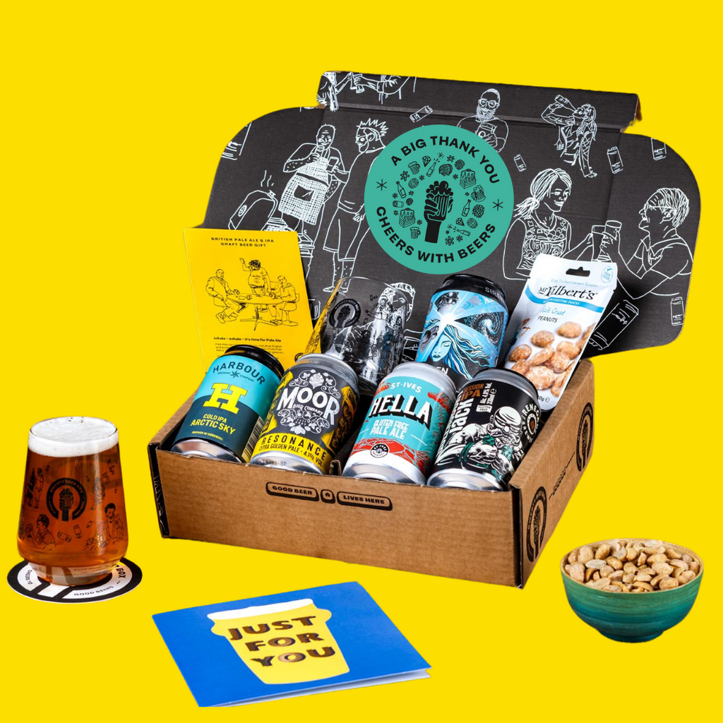 🍺ULTIMATE BEER GIFT for beer lovers, 5 cracking craft IPAs & Pale Ales, premium salted Mr.Filbert's nuts and a stylish branded tasting glass