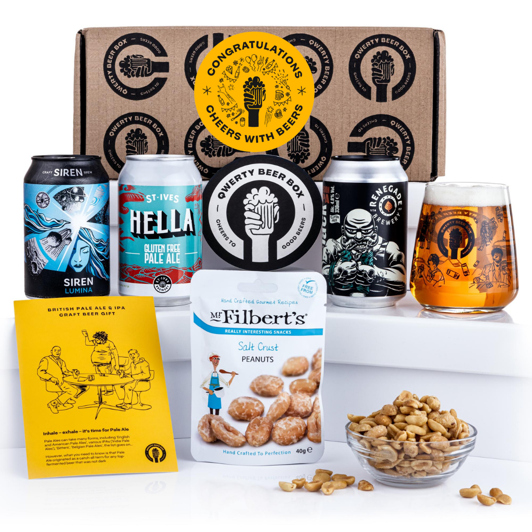 Premium Craft Beer Gift Pack - 3x330ml Craft Beer Cans Including IPA and other Pale Ales, Bespoke Branded Glass and Delicious Mr.Filberts Snack - Craft Beers Tasting Experience with Tasting Notes