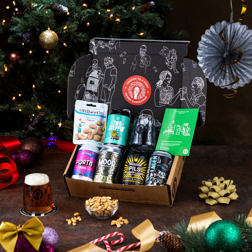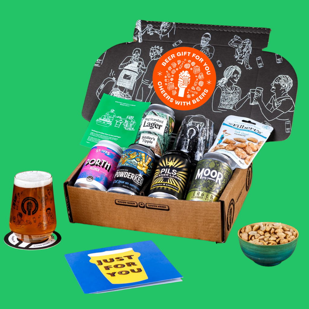 As well as the 5 beers from the breweries above, our selection includes tasty salt crust peanuts from our friends over at Mr.Filberts - a Glastonbury, Somerset based family business, a QWERTY Beer Box glass and tasting notes for the ultimate craft beer tasting experience. The packaging is custom made for its beery contents and designed by us to minimise wastage, protect the precious beers and look great. We think this all comes together to make the perfect gift, we hope you & the lucky gift receiver agree!
