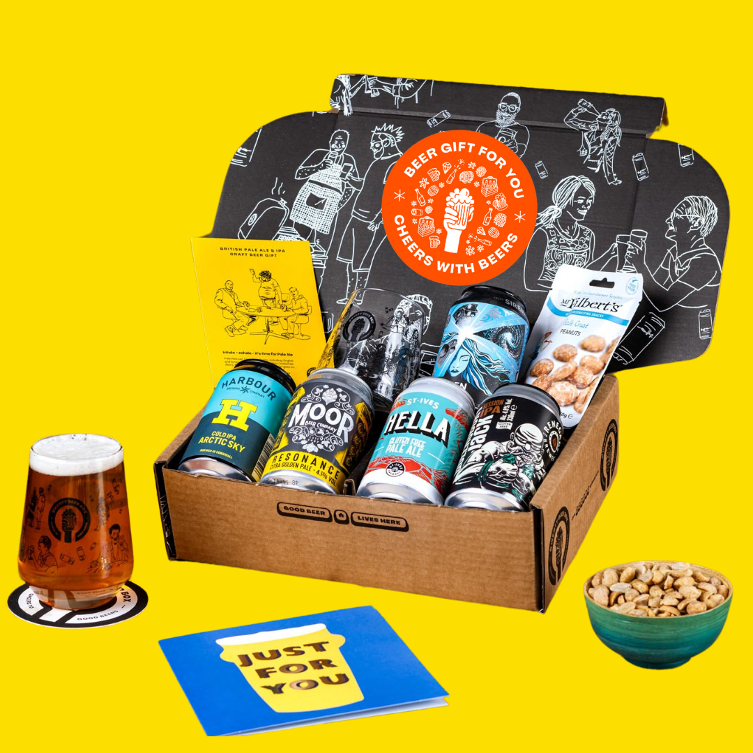 🍺ULTIMATE BEER GIFT for beer lovers, 5 cracking craft IPAs & Pale Ales, premium salted Mr.Filbert's nuts and a stylish branded tasting glass